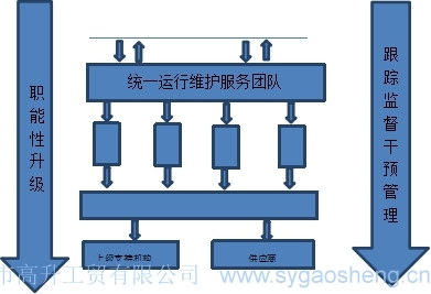本技術(shù)實施方案中,由十堰市高升工貿(mào)有限公司(涉密信息系統(tǒng)集成資質(zhì)企業(yè)、十堰市政府采購協(xié)議供應(yīng)商、原單位信息化承建商)負責網(wǎng)絡(luò)運行維護服務(wù),提供1-3名網(wǎng)絡(luò)技術(shù)專業(yè)人員提供不駐場服務(wù),由負責本項目總體運行維護服務(wù)單位統(tǒng)籌調(diào)度,及時響應(yīng)保障。 整體運行維護服務(wù)框架如下圖所示: