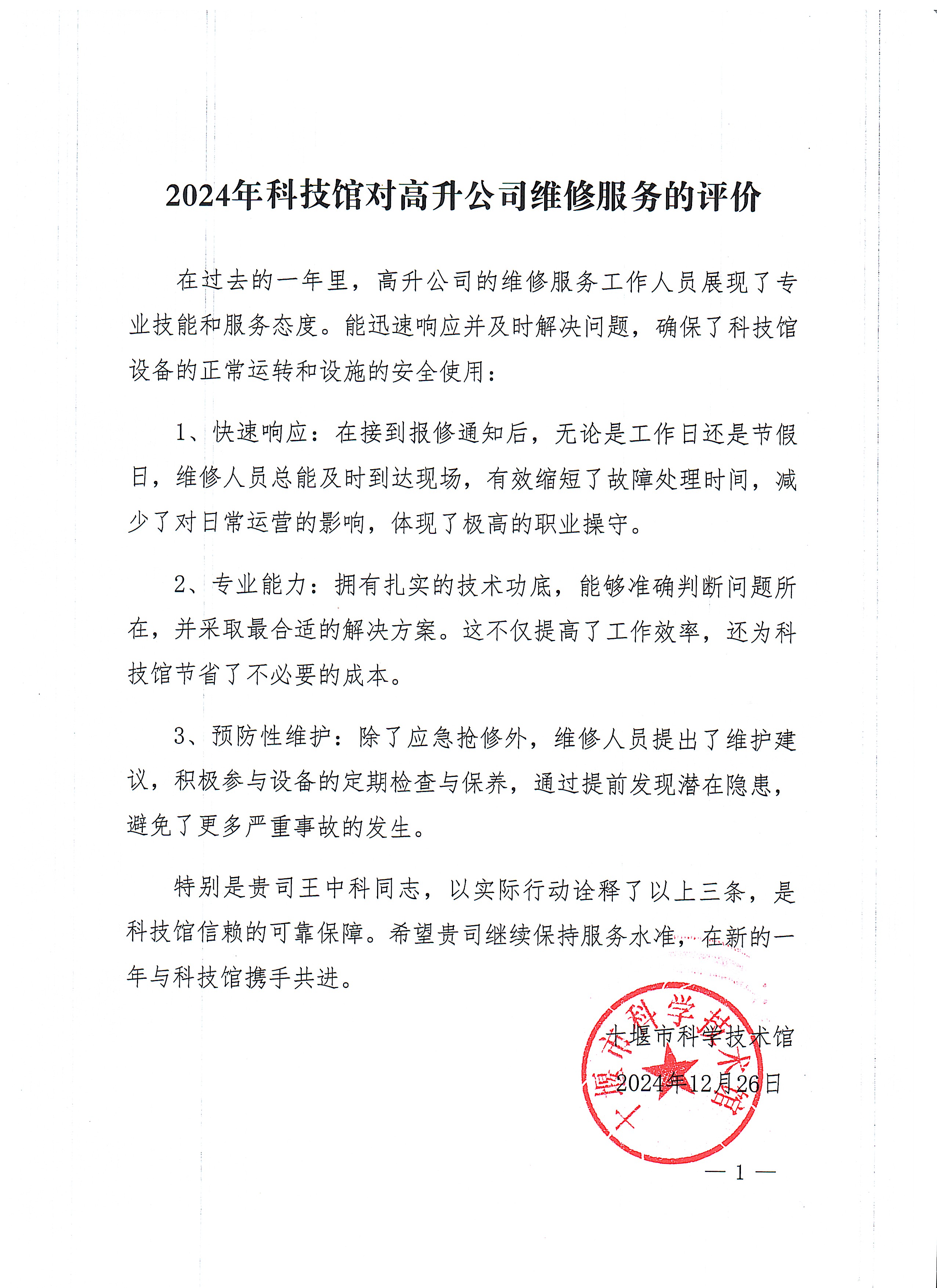 王中科,技服事業(yè)部運維服務(wù)人員,2023年退休返聘勞務(wù)人員,在2024年獨立承擔(dān)市科技館維修服務(wù)工作期間個人創(chuàng)效17476元,受到單位書面致函表揚和肯定。