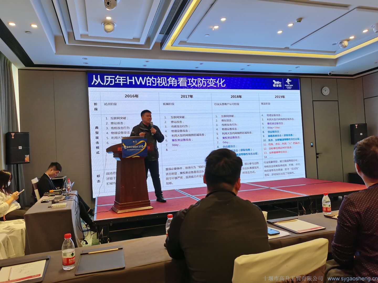 奇安信華中區(qū)技術總監(jiān)王超、湖北分區(qū)渠道銷售總經(jīng)理楊軍、高級工程師朱夢飛及湖北省各地市州企業(yè)代表約40余人出席會議,十堰市高升公工貿(mào)有限公司王俊、李相國蒞臨會議現(xiàn)場。